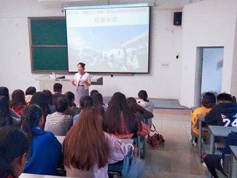 10月9日中午,我校2017年“新起点心希望”新生入校适应性跟踪活动的启动仪式在J1B106教室举行。启动仪式由心理健康教育中心刘晓老师主持,参与活动的近80名大一新生同心理协会的干部们一起出席了启动仪式。
