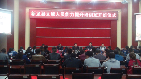 4月10日,由中共新龙县县委组织部、宜宾援建队与我校共同举办的新龙县文秘人员培训班开班仪式在学校行政楼一楼会议室举行,新龙县委常委、组织部部长高正辉,我校党委书记管永林、副院长岳文喜以及学校党委组织部、继续教育部负责人出席本次开班仪式,开班仪式由岳文喜副院长主持。来自于新龙县的42位基层文秘人员参加了本次培训。