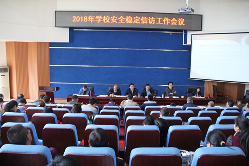 4月16日下午,我校在学术厅召开2018年安全稳定信访工作会议,传达学习上级有关部门关于安全稳定信访工作会议精神,深刻分析当前形势,专题部署了学校安全稳定信访工作。会议由李春明院长主持,院领导、中层干部、辅导员以及安全、稳定、信访工作部门人员参加会议。