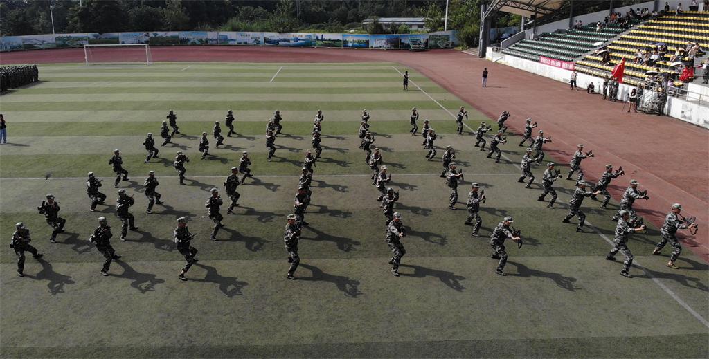 课目表演部分气势恢弘,异彩纷呈。在战术表演课目《渴望光荣》中,同学们卧倒滑行、匍匐前进、持枪行走,整齐划一的坚定步伐,灵活变换的队形阵列,精彩的营救行动,尽展特战队员的敏捷身手和英勇刚毅的军人气质,用过硬的战术素养展现踏实稳健的训练成果。女子匕首操《精忠报国》,她们手握利刃钢刀,肩扛使命担当,钢柔并济之间,用精湛的技能、过硬的本领和刚毅的气质感染了现场师生。三声三相《男儿当自强》,气势如虹、不动如山、动若脱兔,用青春向山大告白,用龙虎生威的气势彰显我校大学新生的精神风貌。擒敌拳《中国功夫》同学们斗志昂扬、势如霹雳、“杀”声嘹亮、威震四方。刺杀操,同学们干净利落的动作和勇往直前的士气成为一道独特风景,热血男儿志,巍巍工商情;动静之间,环环相扣,万无一失;行阵之中,气吞云海,军威赫赫。手语操《中国人》同学们踏着青春的节拍,朝气蓬勃,意气风发,用双手舞出“庆祝中国共产党成立100周年,1921-2021”和“18luck支付宝充值 、明德强技,行健精艺”,向党的百年华诞献礼,铭记校训,为学校送上美好祝福。