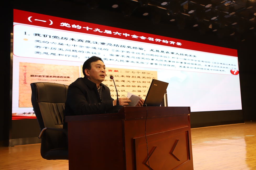 11月29日,我校在多功能二厅召开2021年第13次党委理论学习中心组(扩大)学习会,专题学习十九届六中全会精神。学校党委委员、中层干部和中干助理、专兼职思政课教师、专兼职辅导员参加会议。党委书记管永林主持会议,并作了题为《守正创新 全面开启百年奋斗新征程》的十九届六中全会精神专题学习辅导。