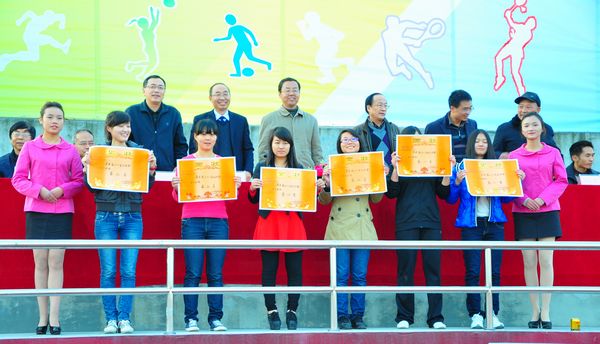随后,本届校动会组委会秘书长、学院副厅级调研员李肇全宣布校动会获奖集体名单,并由学院领导为获奖集体颁奖。其中,获得最佳组织奖的分别是:电商11级联队、造纸12323班、生物12322班、连锁12306班、财务11322班、JAVA12315班、分析11313班;获得热心大会服务奖的分别是:院团委志愿部服务队、环监12322班、营销12319班;获得优秀通讯奖的班级分别是:材料11310班、电商12320班、汽营12301班;机电一体化10级联队和分析11313班分别摘得男子团体与女子团体的桂冠。