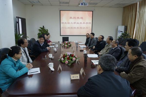 11月22日,湖北轻工职业技术学院陈晓轩副院长等一行5人到我院考察交流,学院孙培生书记、李肇全调研员、黄天贵副书记、徐时彬副院长、岳文喜副院长以及相关系、部门负责人热情接待了来访客人。