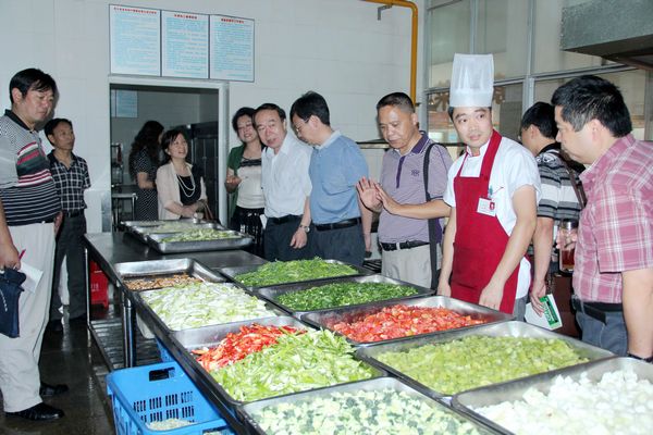 下午,由西南交大后勤集团副总盛鹏任组长的高校标准化食堂预评估专家组一行7人对我院学生食堂进行了预评。