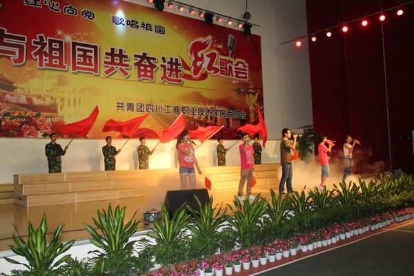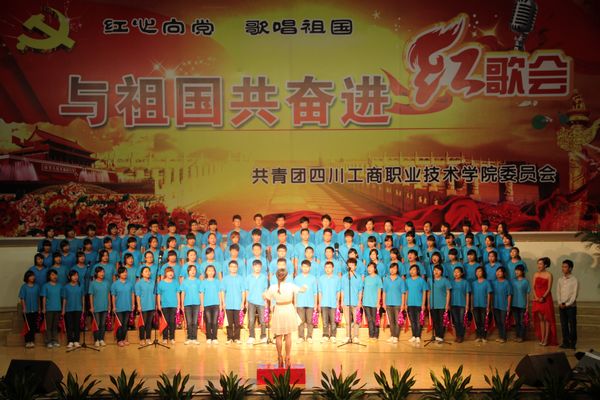 各系的六支合唱队不仅演唱了《四渡赤水出奇兵》、《弹起我心爱的土琵琶》、《翻身农奴把歌唱》等经典歌曲,更演唱了《爱我中华》、《在灿烂的阳光下》、《走向复兴》等充满着时代气息的歌曲,一首首耳熟能详的歌曲,回荡在工商校园。学院党委书记孙培生、党委副书记黄天贵等还饱含深情地上台朗诵了散文诗《中国的微笑》,红歌不仅唱出了工商职院人对党的赤诚与热爱,更唱出了工商职院人的豪迈气概。