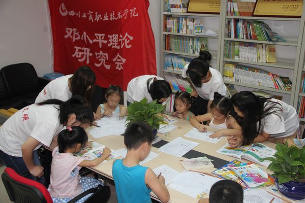 ,在都江堰市幸福镇民丰社区志愿者服务站里俨然成了一个大课堂,学院邓研会暑期“三下乡”社会实践服务队开办“阳光课堂”正在授课,来自四川工商职院的大哥哥、大姐姐们不仅为放暑假的小学生们进行课程与作业辅导,同时还为社区儿童开展绘画技能培训,当天共有26名孩子参加了“阳光课堂”活动,受到孩子们的欢迎。