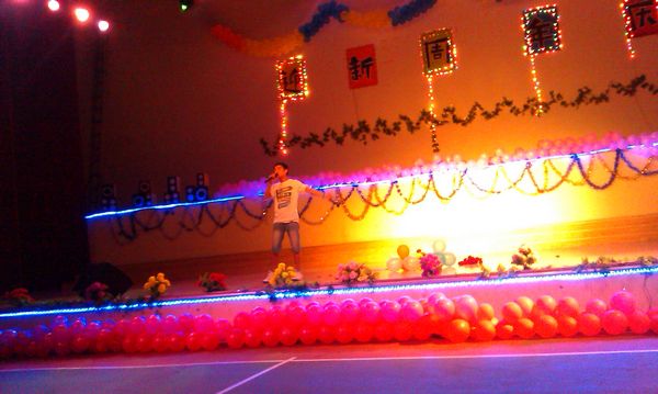 《爵士舞》表演让现场气氛再次达到了高潮,欢快的气氛让每一位同学HAPPY,一位现场的同学大胆走舞台,清唱了《十年》。
