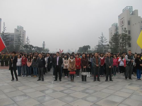 10月8日,由院团委组织的庆祝新中国成立63周年升旗仪式在学院厚德广场举行。学院党委副书记黄天贵、学生工作处、院团委及各系党、团总支负责人出席了此次活动。我院全体在校师生7000多人参加了此次升旗仪式。