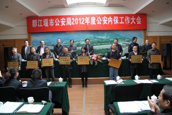 ,都江堰市公安局召开2012年度公安内保工作会议。会议总结了2011年全市内保系统治安保卫工作,安排部署了2012年度各项工作。会上表彰了一批先进集体和先进个人,我院内保工作,坚持“预防为主,单位负责,突出重点,保障安全”的工作方针,认真贯彻落实《企事业单位内部治安保卫工作条例》,顺利的完成了全年的安全工作,被成都公安局评为2011年度成都市公安局内保系统“先进集体”,同时被都江堰市公安局评为2011年度内保系统“平安示范单位”。保卫处处长杨敬东被成都市公安局评为2011年度内保系统“先进个人”。