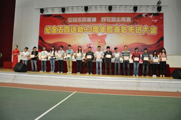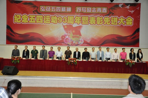 下午14:30,我院庆祝中国共青团成立成立90周年、“五四”运动93周年暨2011—2012年度先进表彰大会在素质拓展中心篮球馆隆重举行。学院党委领导以及党务、学生工作部门的负责同志参加了本次大会。