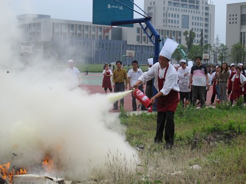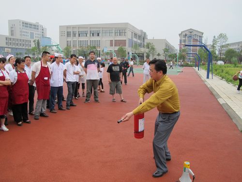 下午,学院“2012紧急逃生避险疏散演练活动”后,生活服务处组织学院食堂和超市职工50多人,在学院篮球场边的空地上进行了消防培训并进行了消防灭火实战演练。