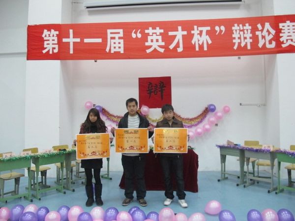 激烈的辩论赛结束之后,举行了辩论赛颁奖仪式。管理系获得冠军,机电工程获得亚军,轻化工程系获得季军。管理系韩明同学获得最佳辩手称号。