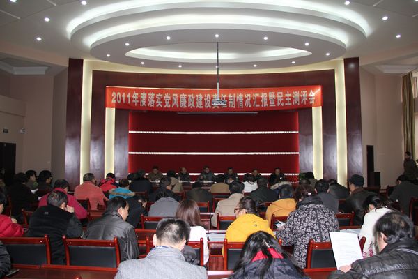 12 月 19 日 ,学院在行政楼一楼会议室召开2011年落实党风廉政建议责任制情况汇报暨民主测评会。学院班子成员、中层干部、教代会代表、民主党派代表、离退休人员代表共85人参加会议。