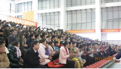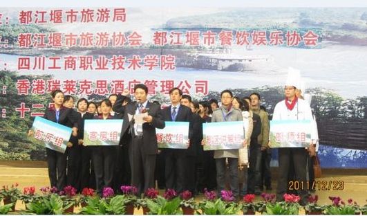 上午9:30,由香港瑞莱克斯酒店管理公司策划,都江堰旅游局主办,都江堰市旅游协会、都江堰市餐饮娱乐协会承办,我院协办的为期七天的都江堰市旅游服务综合技能大赛在学院素质拓展馆隆重开幕。