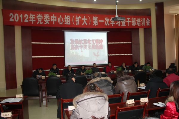 为了进一步统一干部思想,明确新学期、新学年的工作目标任务,推进学院的建设和发展,2月16日下午,学院在行政楼一楼会议室召开了2012年党委中心组(扩大)第一次学习暨干部培训会。黄天贵副书记主持会议并就相关工作进行安排,院长肖和平、党委书记孙培生作了重要讲话。