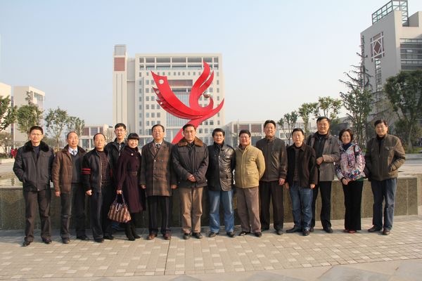 来宾与院领导在厚德广场“火凤凰”雕塑前合影