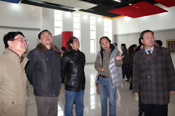 参观设计艺术系新落成的展厅,该系教师创造的大型油画吸引大家的目光。