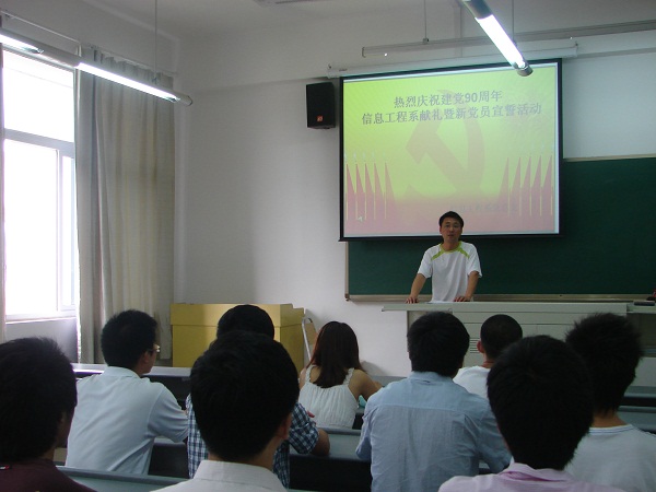 下午,信息工程系学生党支部举行“新党员入党宣誓暨祝福献给党”庆祝活动,系党总支副书记任煛、全系所有学生预备党员、党员参加了庆祝活动。