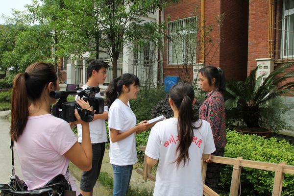 ,都江堰市精神文明办公室易主任、学院宣传部部长丁思勇、团委副书记杨婧一行前往向峨乡鹿池新村、滨江街道金江社区、聚源镇、石羊镇金羊村等处看望慰问正在都江堰城乡开展暑期“三下乡”社会实践服务队的同学和指导老师。都江堰电视台记者随同前往,并对在鹿池新村开展“我与祖国共奋进,青春建功新农村”暑期“三下乡”社会实践服务队开展阳光课堂教学和科技、文化、卫生及生活小常识宣传等志愿服务活动的情况进行了拍摄,对村民、指导老师、服务队同学进行了采访,并在当晚的《都视报道》节目中进行了播出。