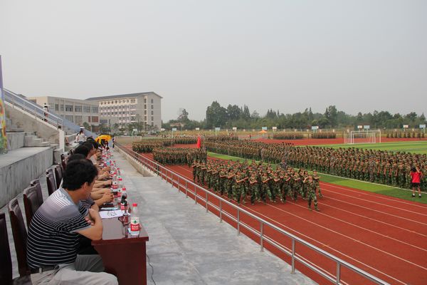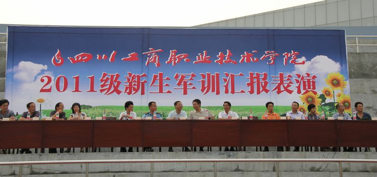 下午,学院在刚刚全面投入使用的新校区运动场举行了2011级新生军训汇报表演。省经信委党组成员、机关党委书记汪安生一行7人和学院领导孙培生、肖和平、李肇全、黄天贵、徐时彬、周维义、岳文喜及本次学生军训团团长张旭中校等领导出席活动并观看了新生军训汇报表演。本次活动由副院长徐时彬主持。