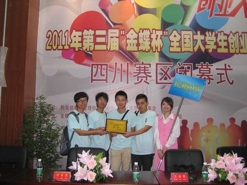 日,在管理工程系杨柳副主任、蒋相岚老师的带领下,由周零、余天伟、范治廷、蒲坤四位同学组成的代表队参加了第三届“金蝶杯”全国大学生创业大赛四川赛区的比赛。该队在“总经理”周零的带领下,过关斩将,取得了四川赛区总成绩第二名的优异成绩,并将代表四川赛区参加全国总决赛。