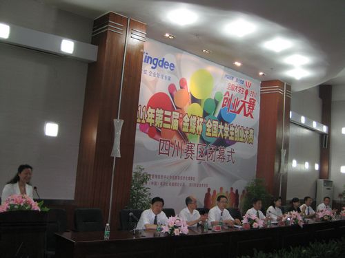 第三届“金蝶杯”全国大学生创业大赛由教育部教育管理信息中心、中国教育信息化理事会主办,四川省学生联合会作为指导单位,四川职业技术学院、金蝶软件(中国)有限公司成都分公司联合承办,四川赛区的比赛在四川职业技术学院举行。参加本次比赛的有成都纺织高专、四川交通职院、四川工商职院、四川职院、四川信息职院、西华大学安德校区等全省15所高职高专院校的60余名学生参赛。