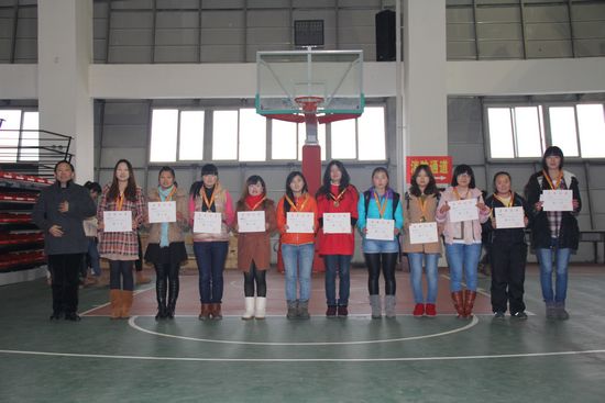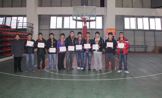 1月11日下午,在篮球馆举行颁奖仪式。学生工作处梁正席处长为男、女获得前八名球队以及优秀工作者颁发奖牌、证书和奖金。