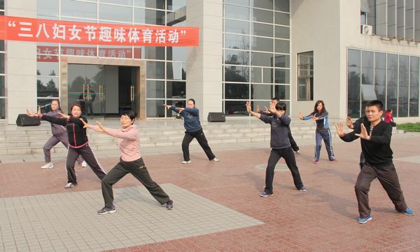 为丰富本次妇女节庆祝活动,学院工会女工委员会还组织开展了太极拳表演,开幕式后举行了绕行健路慢跑、跳绳、踢毽子等趣味运动项目比赛。