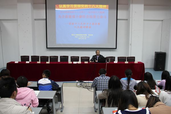 开学典礼结束后,党委副书记黄天贵以《认真学习贯彻党的十八大和十二届全国人大会议精神,为全面建成小康社会而努力奋斗》为题,讲授了第一堂课。
