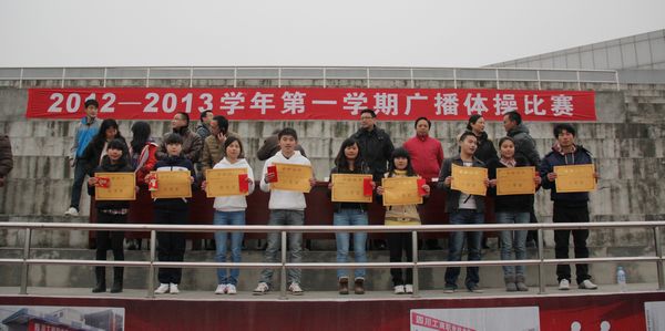 为了进一步提高早操质量,增加学生早操锻炼的自觉性和积极性。12月24日下午,我院在体育场举行了2012级学生广播体操比赛。