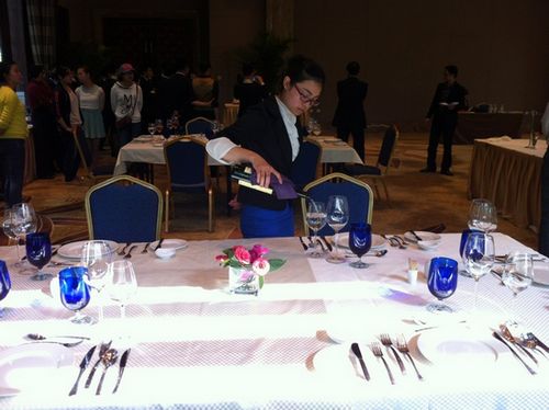 参赛的有酒店的职员,有在校的学生,虽然我们的同学们没有那么多的实践经验,可她们凭借着平日的理论学习以及在校的实践操作,整个比赛过程沉着冷静、有条不紊,充分体现了当代大学生较高的专业素质。