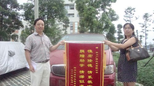 7月8日,我院机电工程系党总支副书记张思杨把书有“惟宏隆德,情系教育;捐赠助学,情深似海” 的锦旗送到四川广博汽车有限公司刘经理手中,以表达学院全体师生对四川广博汽车有限公司热心助学的感激之情。