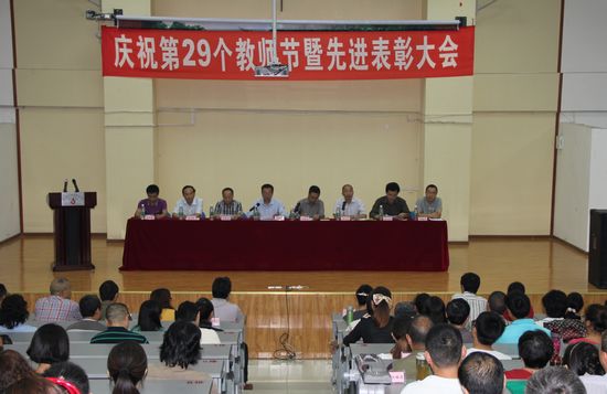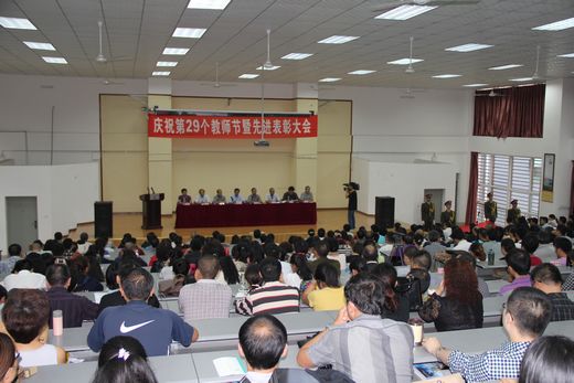 9月10日下午,学院在第二教学楼B座演讲厅举行庆祝第29个教师节暨先进表彰大会。学院领导、全体教职工、离退休教师代表、学生代表共计460多人参加了大会。大会由党委副书记黄天贵教授主持。