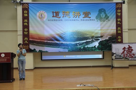 10月14日晚,由财经系承办的我院第八期道德讲堂活动在J2B演讲厅举行。出席本次活动的有宣传部部长丁思勇、财经系主任杨柳、党总支副书记聂文俊等及各系教师代表和学生代表。