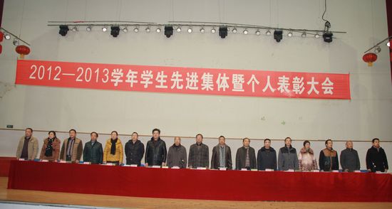 12月27日下午,学院2012-2013学年度学生先进集体暨个人表彰大会在素质拓展馆多功能厅举行。孙培生、李春明、黄天贵、徐时彬、岳文喜等院领导以及分管学生工作相关部门的负责人出席了会议。