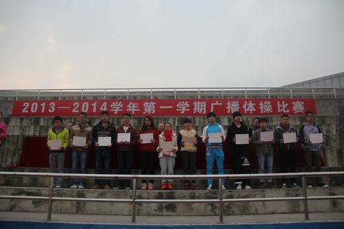 1月6日下午,2013-2014学年第一期2013级学生广播体操比赛在学院运动场举行,来自我院7个系2013级的59个班级共2500余名学生参加了本次比赛,学生工作处及各系相关负责人出席比赛并担任评委。