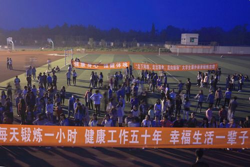 为引导和帮助大学生提高参加体育锻炼的主观能动性、形成良好的体育锻炼习惯、帮助和促进大学生增强体质认知、提升身体素质,努力培养青春健康、朝气蓬勃、体魄强健的青年一代。近日,共青团四川省委学校部下发了《四川省大学生“走下网络、走出宿舍、走向操场”主题群众性课外体育锻炼活动的通知》。根据通知的相关工作任务和活动要求,我院团委特制订了在校内开展以学生为主体的群众性课外体育锻炼活动的计划,并于本周开始了活动计划的实施。424日晚8时,足球场上汇集了我院众多学子,在欢快的音乐节奏声中跳起了广场舞、健身操、民族锅庄,展示了“走下网络、走出宿舍、走向操场”的大学生风采。
