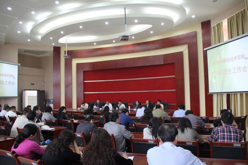 5月7日下午,学院2014年招生工作会在行政楼一楼会议室召开,标志着本年度招生宣传工作已全面铺开。学院领导李春明、李肇全、黄天贵、徐时彬、岳文喜及院长助理王开淮、邓春生、全体中层以上干部、招生办公室和就业指导中心全体人员、部分教职工代表参加会议,会议由岳文喜副院长主持。
