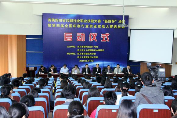 5月10日,首届四川省印刷行业职业技能大赛“新财杯”决赛暨2014年中国技能大赛——第四届全国印刷行业职业技能大赛四川选拔赛在我院启动。省新闻出版广电局、省人社厅、省经信委、省职业技能鉴定中心、省印刷协会及活动承办方我院和赞助方四川新财印务有限公司等部门(单位)的领导和相关处室负责人出席活动。全省50余家印刷企业的参赛选手、我院与成都工业学院、电子科大成都学院、绵阳职院等4所高校印刷专业学生代表共300余人参加了开幕仪式。开幕式由省新闻出版广电局印刷发行处处长孙昌权主持。