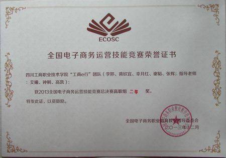 在全院齐心协力建设省级示范性高等职业院校之际,从北京又传来振奋人心的好消息,由我院信息工程系艾曦、高凯、钟舸三位老师指导的“工商e行”团队在“2013全国电子商务运营技能竞赛总决赛”中取得二等奖的好成绩,并获得 “最佳创意奖”。这是继四川赛区复赛取得特等奖之后,我院信息工程系电商代表队连战连捷,再次取得了优异的成绩。