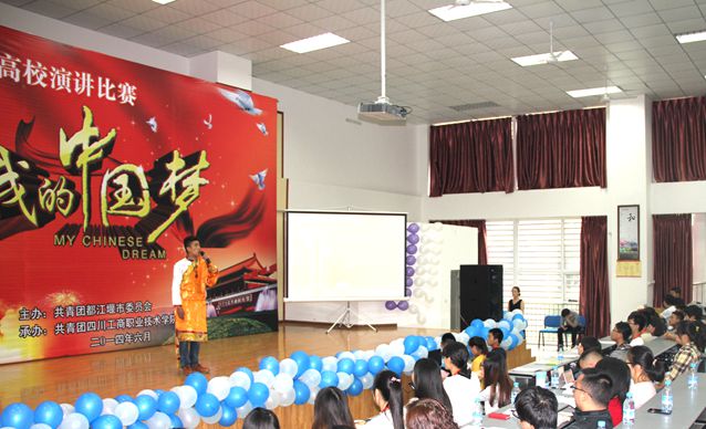 6月13日下午,在我院J2B演讲厅隆重举行了都江堰驻市高校“我的中国梦”演讲比赛。本次演讲比赛是由我院与四川农业大学都江堰校区、电子科技大学、成都东软学院、四川水利职业技术学院五所高校演讲协会发起并由共青团都江堰市委会商各驻市高校团委举行的一场比赛。团成都市委党组成员、纪检组长范才全,团成都市委学校部副部长向勇以及团都江堰市委、都江堰文广新局、都江堰市精神文明办的负责同志,我院党委书记孙培生、党委副书记黄天贵、院长助理王开淮等领导出席了此次活动。本次活动的评委由著名作家南怀瑾大师的关门弟子王国平、夏寂书院创始人夏莉莉以及各高校团委书记担任。