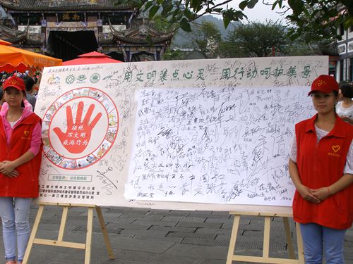 为培育和弘扬社会主义核心价值观,助力品质城市的建设,都江堰市精神文明建设办公室在今年国庆期间开展了以“弘扬节日文化、倡导关爱互助、共建文明城市”为主题的公共文明行为劝导和便民利民志愿服务活动。
