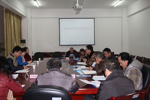 为了深入实施成都市委、市政府《关于实施创新驱动发展战略加快创新型城市建设的意见》和《成都市促进国内外高校院所在蓉协同创新的若干政策措施》,充分发挥地方高校的重要作用,切实推动协同创新和科技成果转化,都江堰科技局局长曾岷、副局长王秀英一行于 1月8日来到我院就校院地协同创新召开了座谈会,我院岳文喜副院长及科技处、中小企业服务平台、产学合作管理中心、各系系主任等相关人员参加了此次会议。