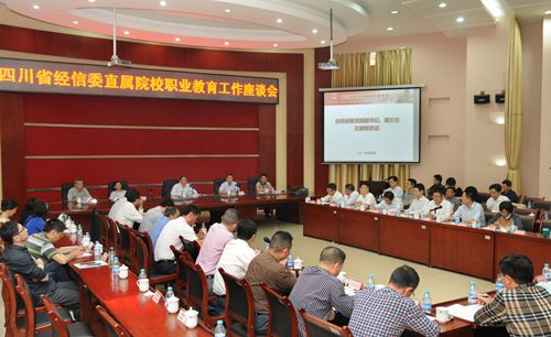 4月28日, 四川省经济和信息化委员会直属院校职业教育工作座谈会在我院召开。省教育厅高等教育处、省经信委相关机关处室、委直属职业院校、校企合作企业、园区、四川省中小企业发展中心等单位的负责人参加会议,并对校企合作、产教融合发展提出意见建议,寻求职业院校围绕产业发展形势提高办学水平的有效途径。省经信委党组副书记、副主任王建明出席会议并讲话。