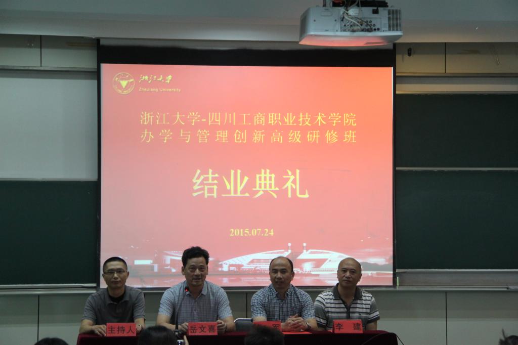 在培训即将结束时,岳文喜副院长、人事处李建处长等一行三人冒着酷暑、不远千里来到浙大看望、慰问学员,陪同大家参观了解企业,并参加了结业典礼。在此次培训中,无论酷暑还是暴雨,团队没有一个人迟到、请假,大家都废寝忘食汲取着关于高职教育的知识,联系工作实际与专家进行热烈的讨论交流,体现了工商职院人良好的精神风貌受到浙江大学的领导和老师们给的高度评价。