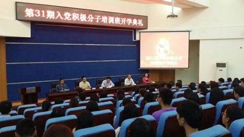 9月23日,学院第31期业余党校入党积极分子培训班开学典礼在学术厅举行。党委书记管永林、党委副书记、业余党校校长黄天贵、副院长王开淮、组织部及各系党总支书记出席了开学典礼。党委组织部副部长孔蕊主持了此次开学典礼。