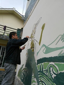 10月29至30日两天,设计艺术系大二、大三6名同学在专业老师的带领下参加了都江堰市崇义镇新华社区墙体彩绘义务活动。