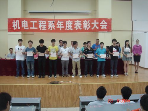 日前,机电工程系举办团学工作表彰会。大会在团歌声中拉开帷幕。首先,由机电系党总支张思扬副书记致词。他号召在同学之间真正形成“比、学、赶、帮、超”的学习精神,让机电系的学风形成一个良性循环。接下来顾元国主任宣读了表彰决定,并为获得2011年度“优秀班级”、“奖学金一等奖”、“CAD技能大赛第一名”等获得者颁发了荣誉证书。希望全系同学要以此为榜样。接下来,优秀班级代表、先进个人代表分别进行了讲话。最后,顾元国主任作了学期总结,鼓励同学们在期末抓紧时间复习功课,号召同学们向获奖的同学、班级学习,为学院争创示范性高职院校做出自己的贡献。