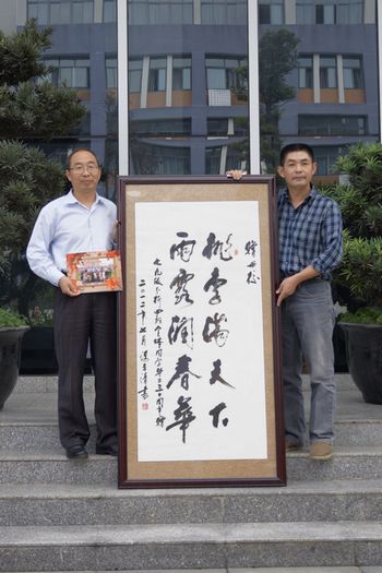 在参观了老校区、看望了老师后,老校友们来到学院新校区,面对布局合理的崭新的新校区,老校友们为学院取得的成就感到由衷的欣慰,在参观完新校区后,老校友们向学院赠送了书法牌匾——“桃李满天下,雨露润春华”,表达了学子对母校的深情厚意。
