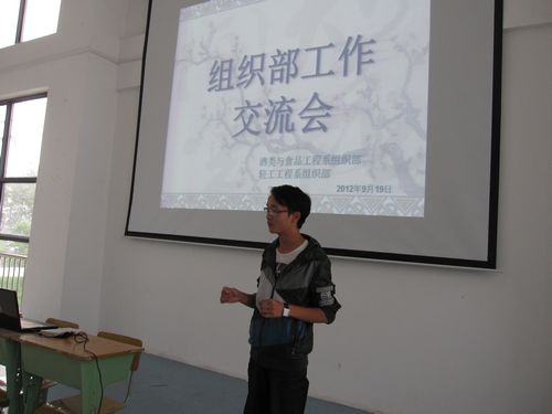 近日,以“相约在这里”为主题的轻工工程系、酒类与食品工程系两系团总支组织部交流会在J2C-101H举行。通过自我介绍、才艺展示两个环节,两系组织部的新老成员进行了相互认识和了解。通过PPT,大家一起回顾了部门活动的点点滴滴,以及在历届成员的智慧和努力下所获得过的无数荣誉,也激励了在场的所有成员。在交流过程中,同学们就如何有效开展组织部工作,各抒己见,提出了许多宝贵的建议。
